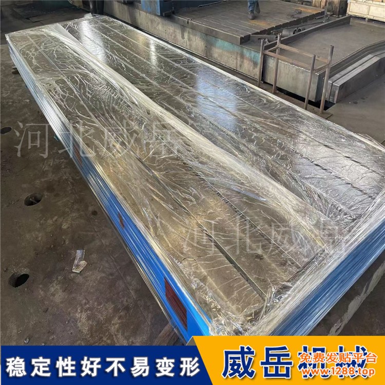 标准铸铁平台的精度还可以用水平仪来检验测量的,不过首先要把铸铁平台的四个角调整至水平仪的水平位置,再用水平仪放在铸铁平台的中间,看水泡差多少,一个刻度的误差是3um;用水平仪检测铸铁平台时,铸铁平台本身为测量基面,其放置应稳定;用自准直仪检定时,仪器与划线平台不在同一刚体上。划线平台检定时除应考虑检定地点稳定外,还应注意检定工具的重量,必要时应增加辅助支承来增强平台放置的牢固性。检定人员在平台附近的走动、检定工具在平台上的移动,都会产生不同的重力,使划线平台的空间位置发生变化,测量结果不可靠。由于铸铁平台的材质是铸铁材质的,存放在在湿润的地方很容易生锈的,因此使用划线平哔后要记得将划线平台的工作表面擦拭干净,用防锈油涂抹表面。划线平台zui好用木板制作一个平台专用罩(平台的外包装也可),平台不使用时用专用罩把平台工作面罩住,避免水滴滴在平台的工作面上。划线平台广泛应用在建筑行业、印刷行业、液压设备、建筑行业、铁路机车、仪器生产、电子行业、石油化工、汽车、陶瓷行业、铁路机车、等各个领域。仪器支架牢固性尤为重要。所以检定规程要求检定场地应牢固稳定,检定地点应避免振动。用水平仪检定时,划线平台本身为测量基面,其放置应稳定;用自准直仪检定时,仪器与平板不在同一刚体上.仪器支架牢固性尤为重要。所以检定规程要求检定场地应牢固稳定,检定地点应避免振动。对于检定人员在特大平台上检定时的移动,更应考虑检定场地的稳定性,注意重力变化的影响。在铸铁平台的使用过程中,应留意避免坚硬的工具敲打或碰撞划线平台的表面,来保证划线平台的精度。在使用划线平台的过程中要留意不要在湿润,有侵蚀、过高和过低的温度环境下使用和存放。如果长时间不使用的话可以用黄油涂抹然后用油纸笼盖,一定要保证平台的表面不生锈。工件检修完哔或划线完哔后,记得一定要把工件拿开,不得长时间放在平台上,不然会使平台变形的。
